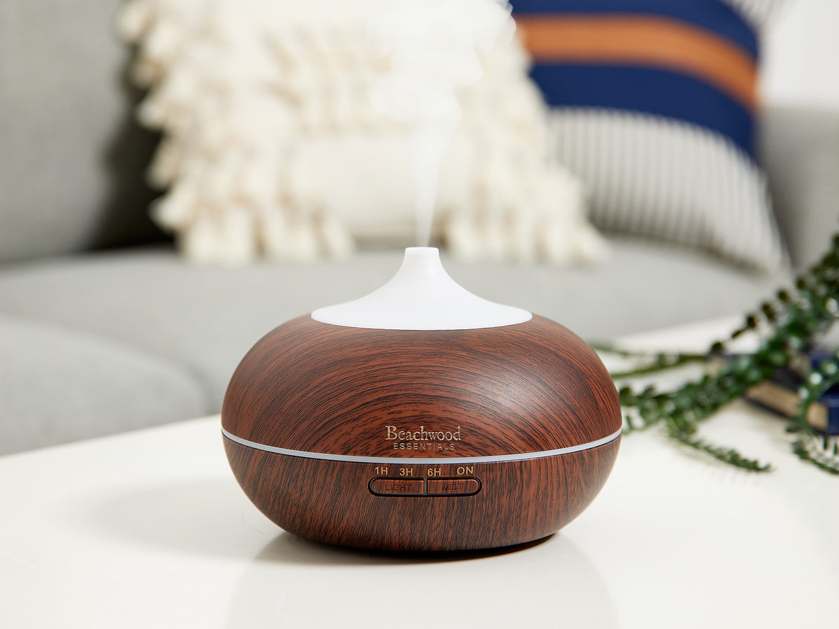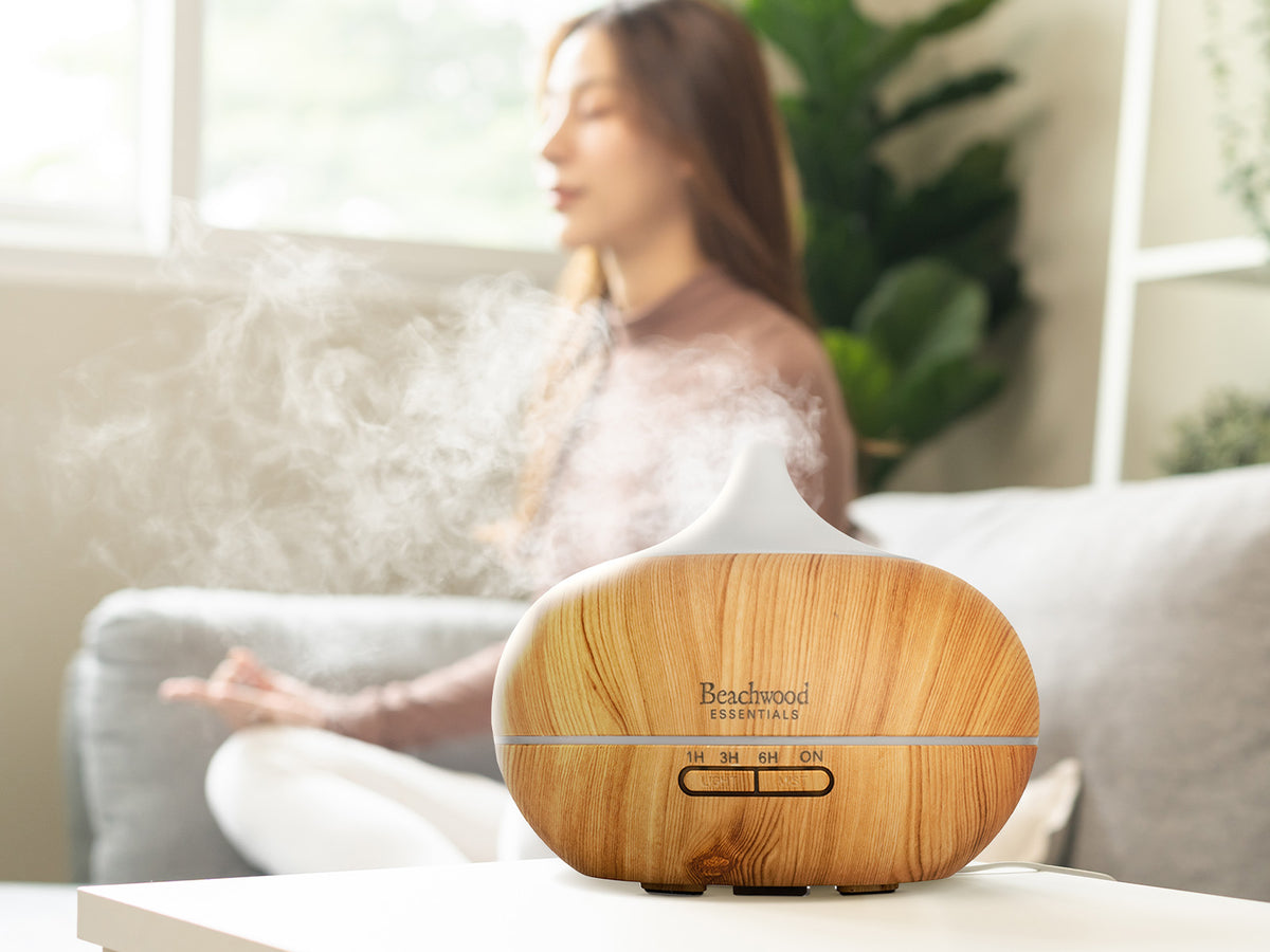 Our diffuser uses ultrasonic vibrations (instead of heat) to turn water and essential oils into a cool, fine mist. This helps preserve the natural aroma of your oils while operating quietly and safely. With a 300 mL tank, it’s best for small to medium-sized rooms like bedrooms, bathrooms, and living spaces. Coverage depends on air circulation and fragrance intensity.
